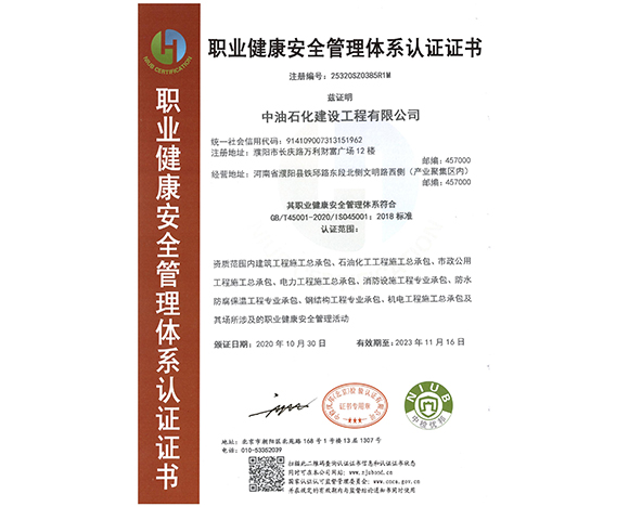 職業(yè)健康安全管理體系認(rèn)證證書