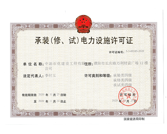 承裝(修、試)電力設(shè)施許可證