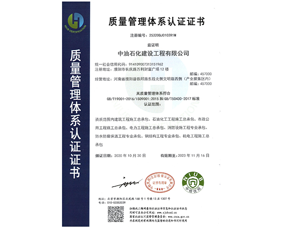 質(zhì)量管理體系認(rèn)證證書