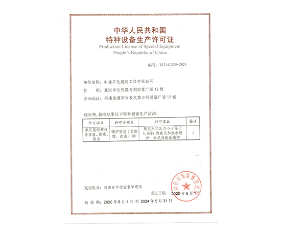 中華人民共和國特種設(shè)備生產(chǎn)許可證