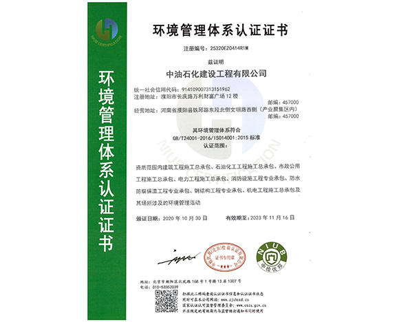 環(huán)境管理體系認(rèn)證證書
