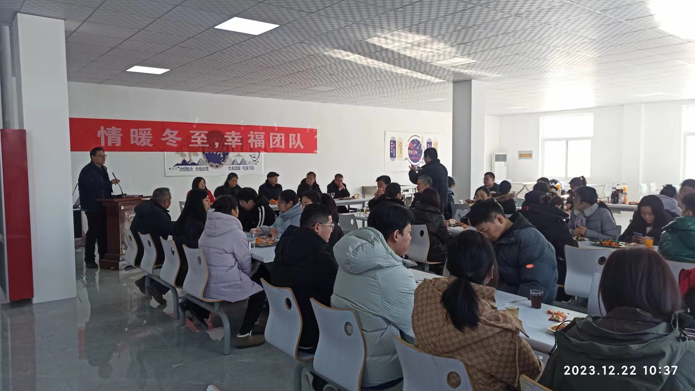 2023年12月22上午,公司在6號樓101大廳舉行"情暖冬至,幸福團隊"主題活動。上午10:20公司機關(guān)全體員工有序入場,活動在10:30開幕。伴隨著一年一度的冬至佳節(jié)到來,公司的慶典活動也如期進行,公司董事長李付玉先生到場并高興致辭。